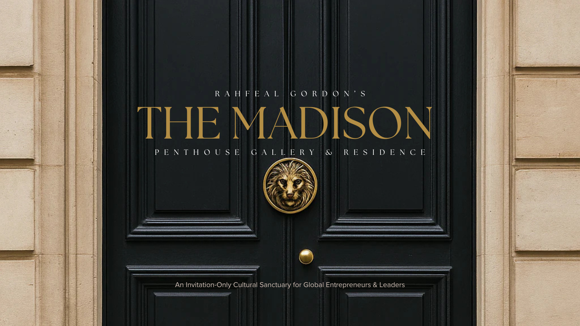 The Madison Penthouse Gallery & Residence is an exclusive private penthouse owned by global leader, entrepreneur, and cultural advisor Rahfeal Gordon. More than a luxury residence, it is a living gallery and intellectual sanctuary designed to nurture and elevate global leaders and entrepreneurs while celebrating art, music, literature, food, and culture at the highest level.